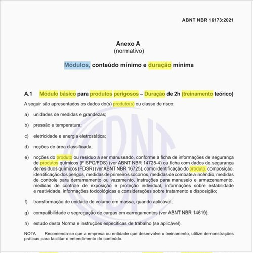 Qual deve ser o módulo básico para produtos perigosos – duração de 2h (treinamento teórico)?