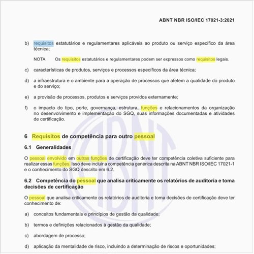 Quais devem ser os requisitos do pessoal envolvido em outras funções de certificação?
